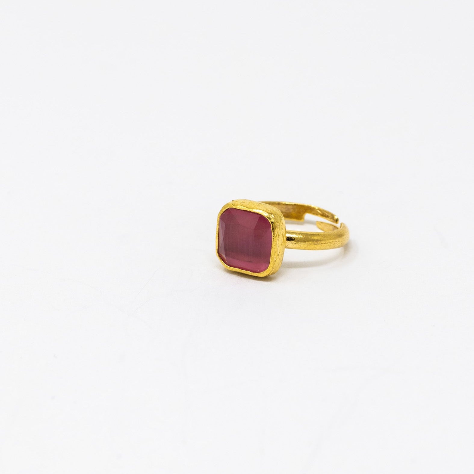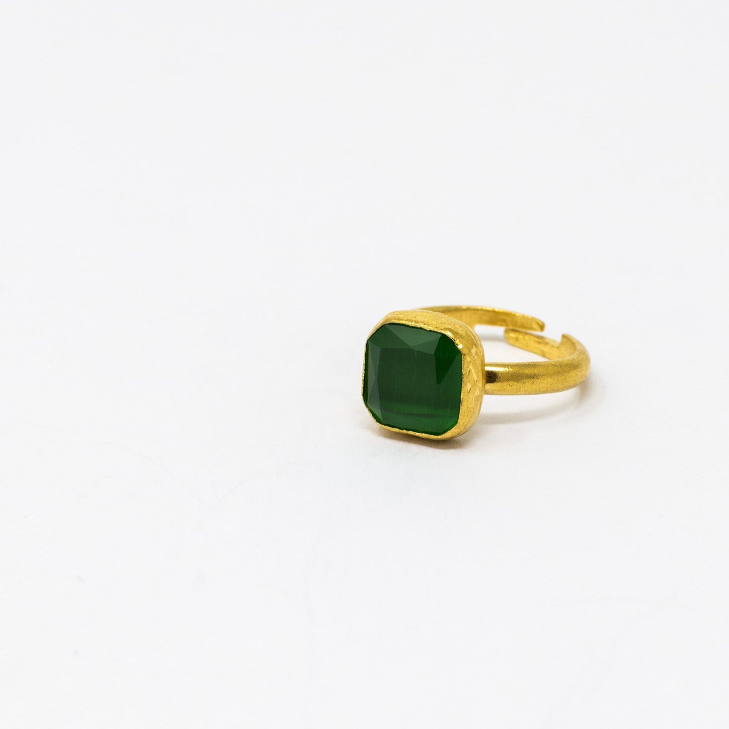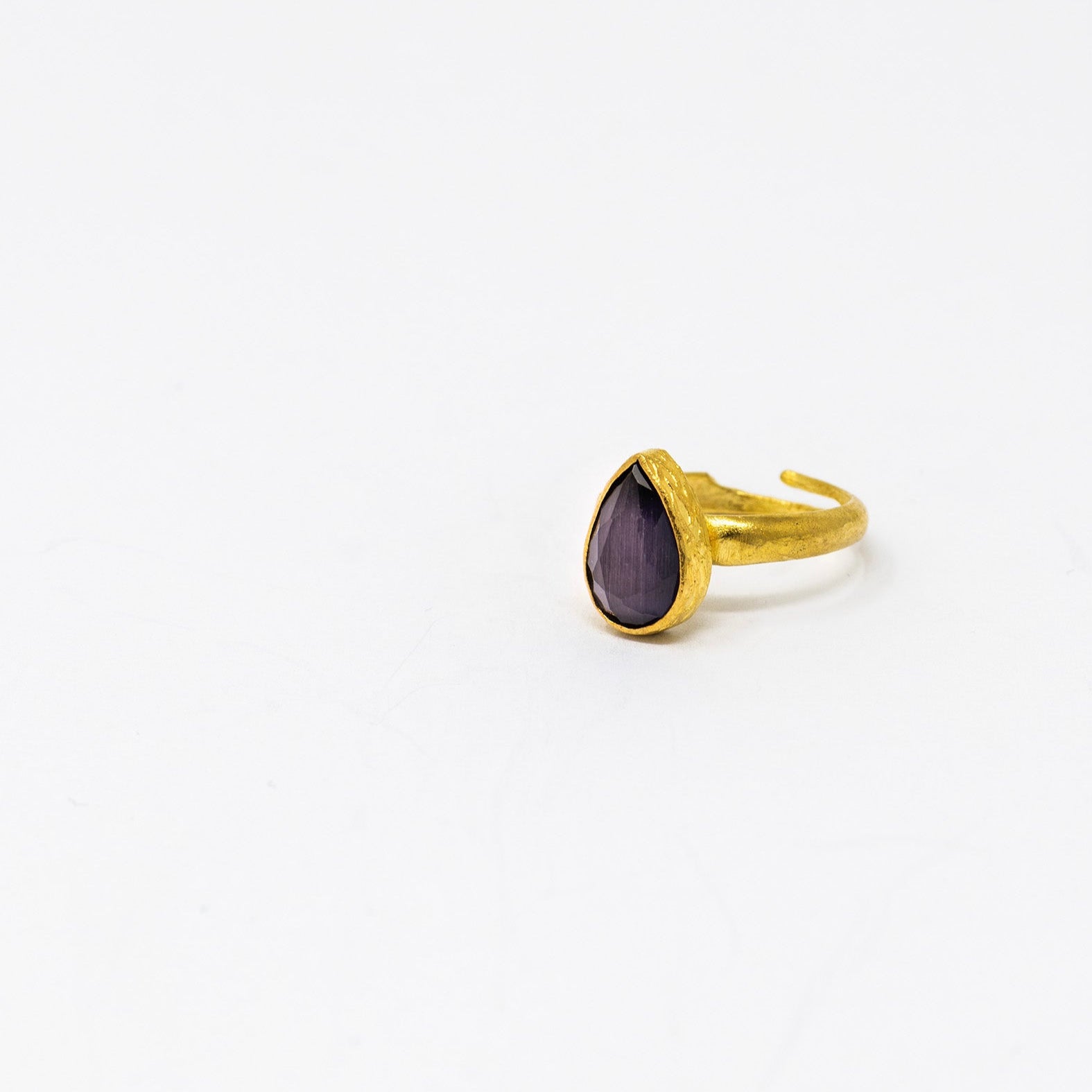 Anello realizzato a mano in ottone placcato oro 22 Kt e pietra naturale.