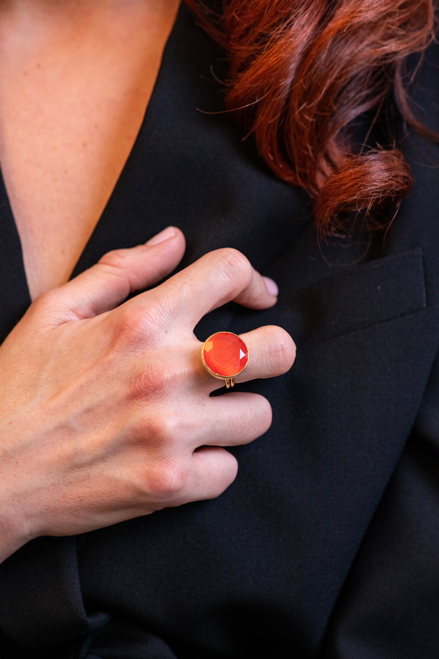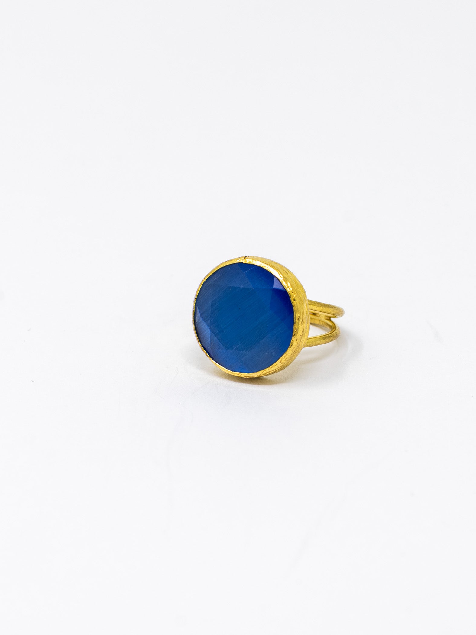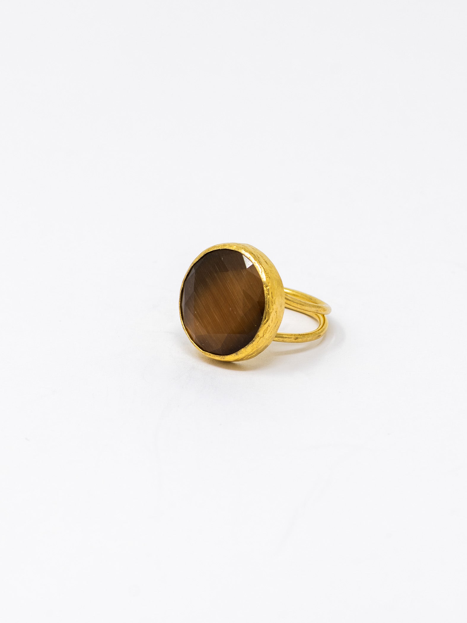 Anello in ottone placcato oro 22 Kt con pietra naturale rotonda.