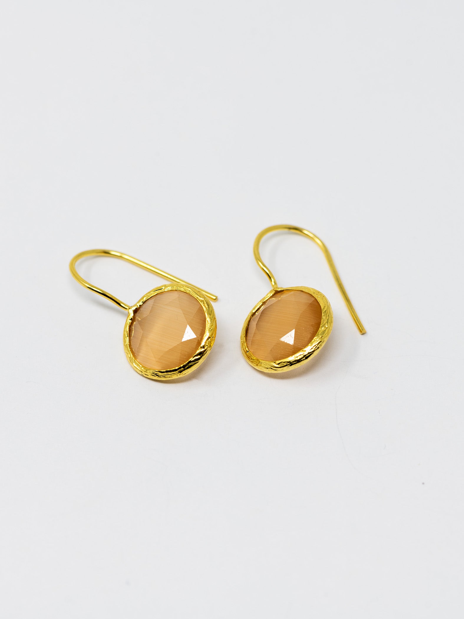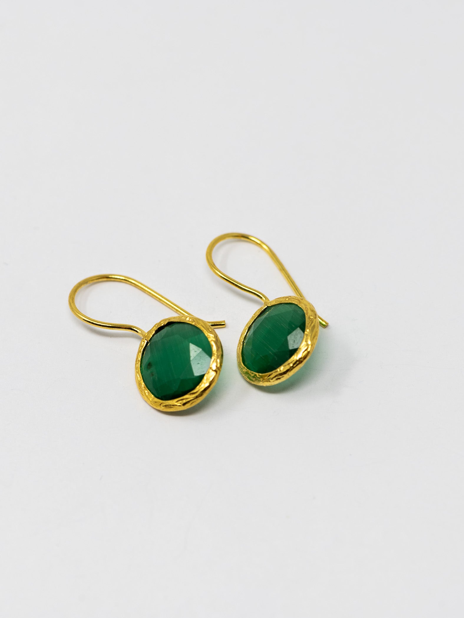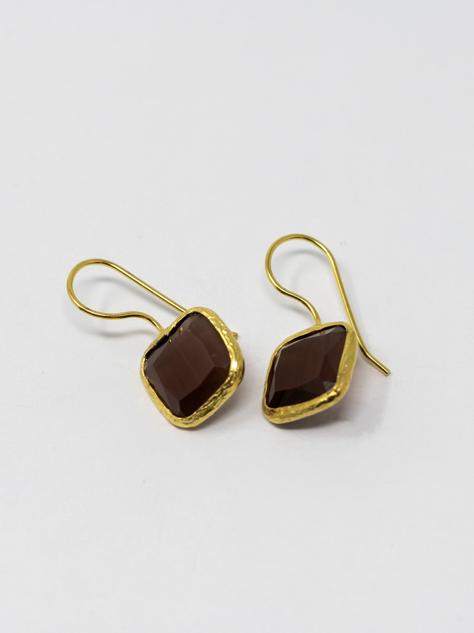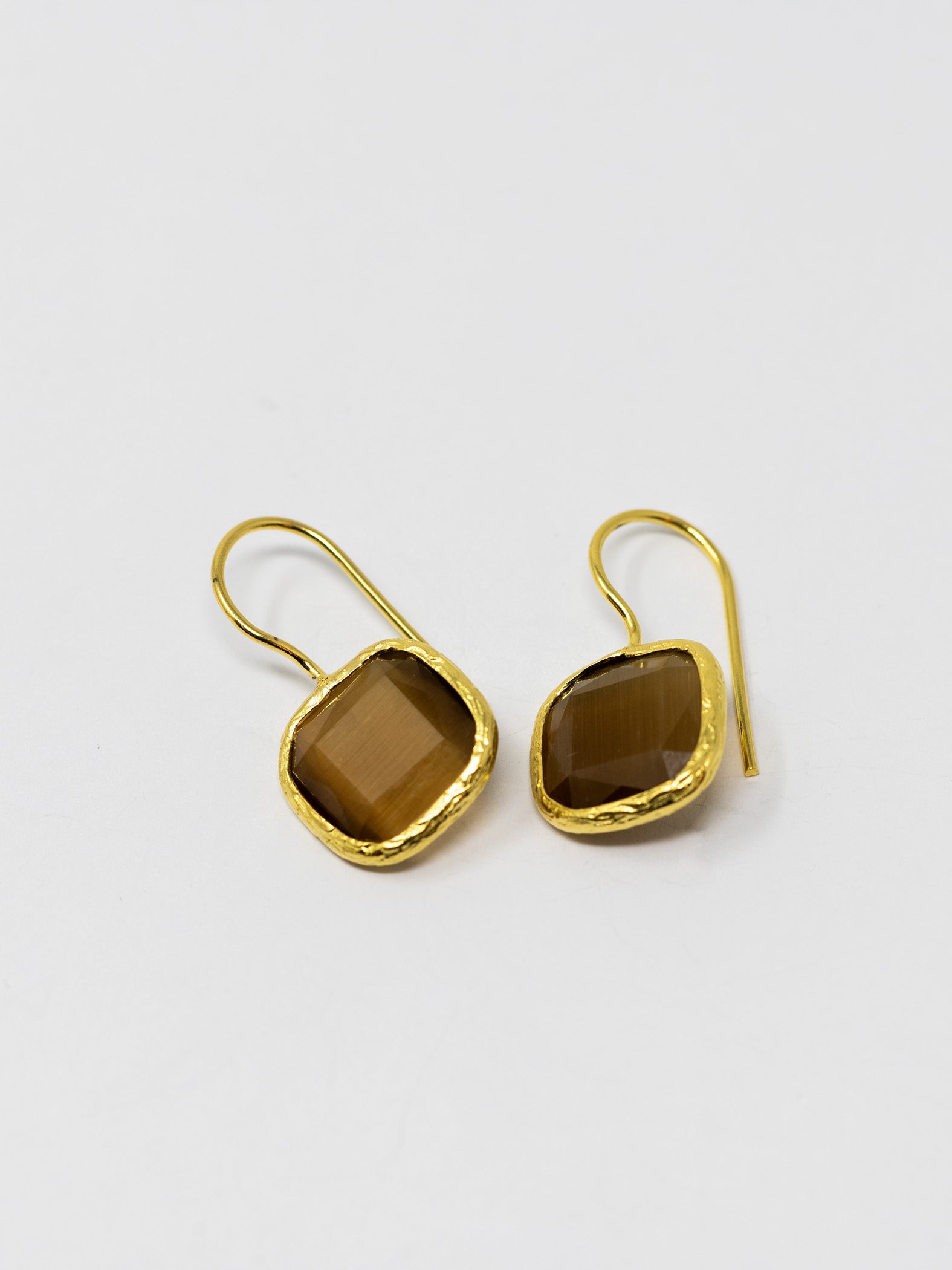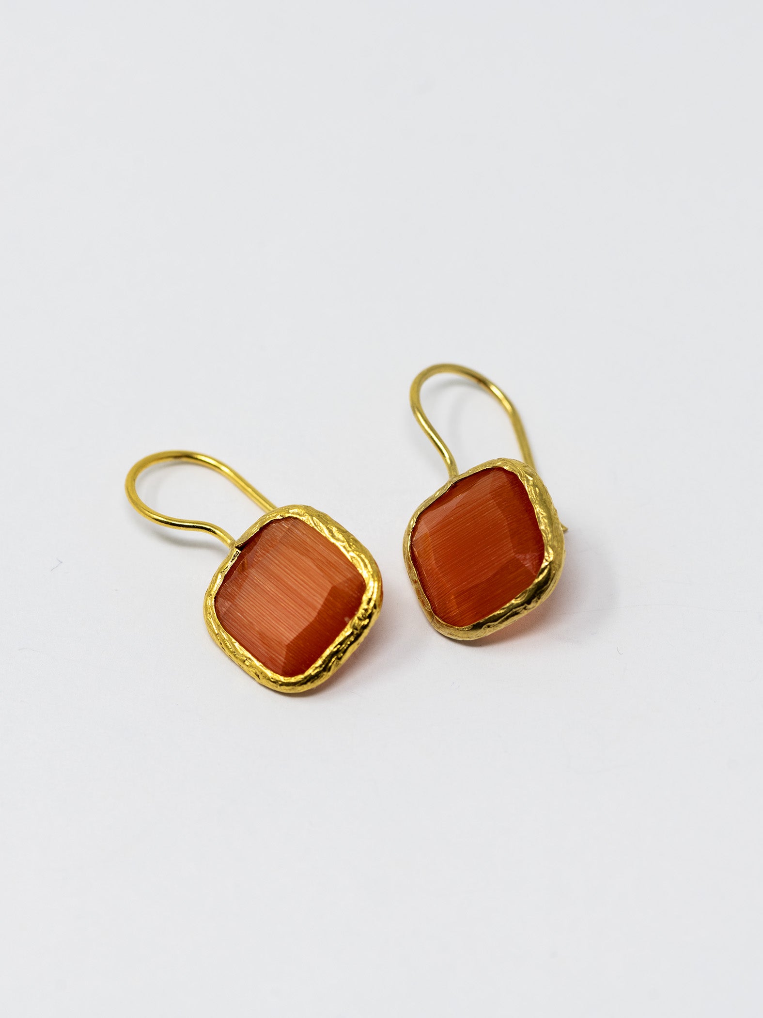 Orecchini realizzati a mano in ottone placcato oro 22 Kt e pietre naturali.