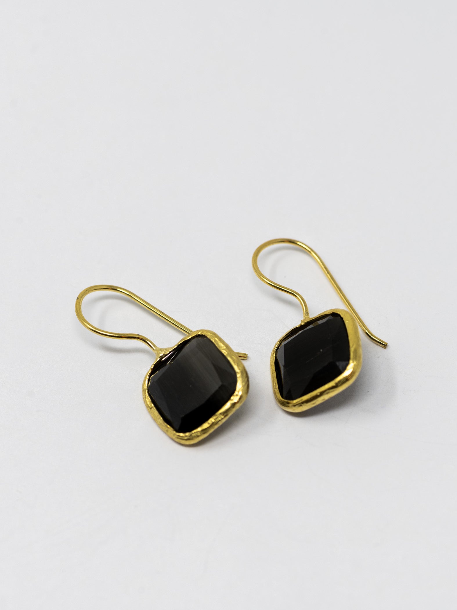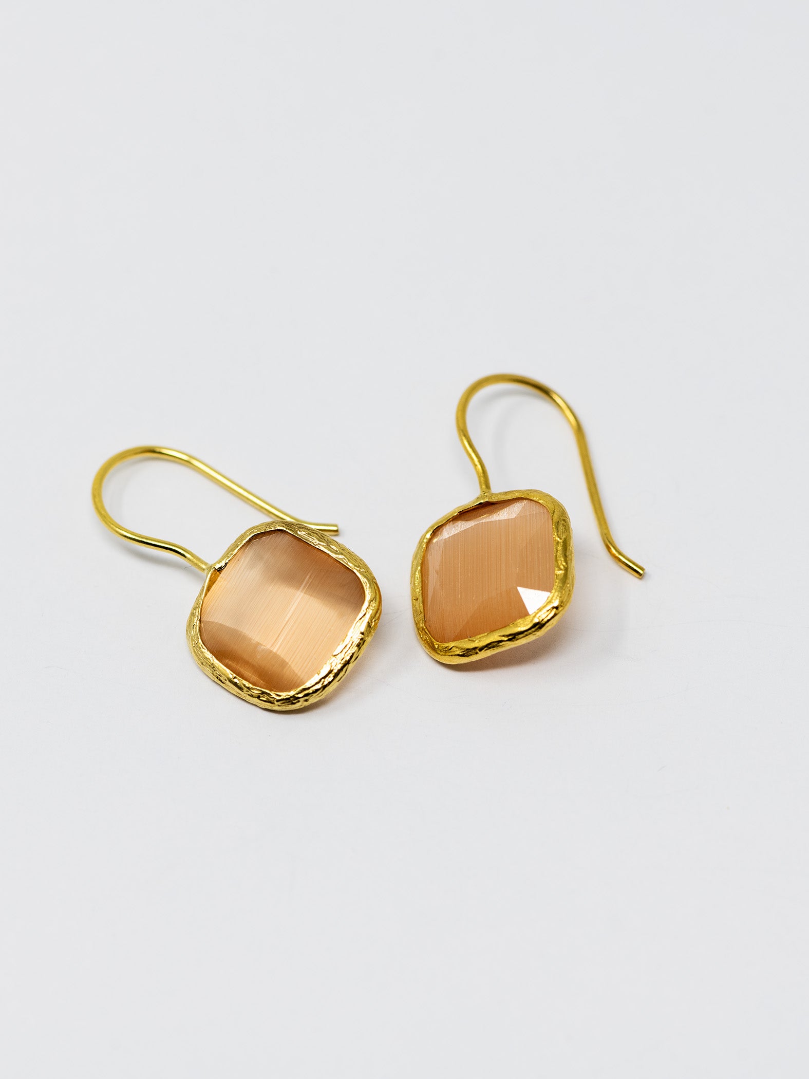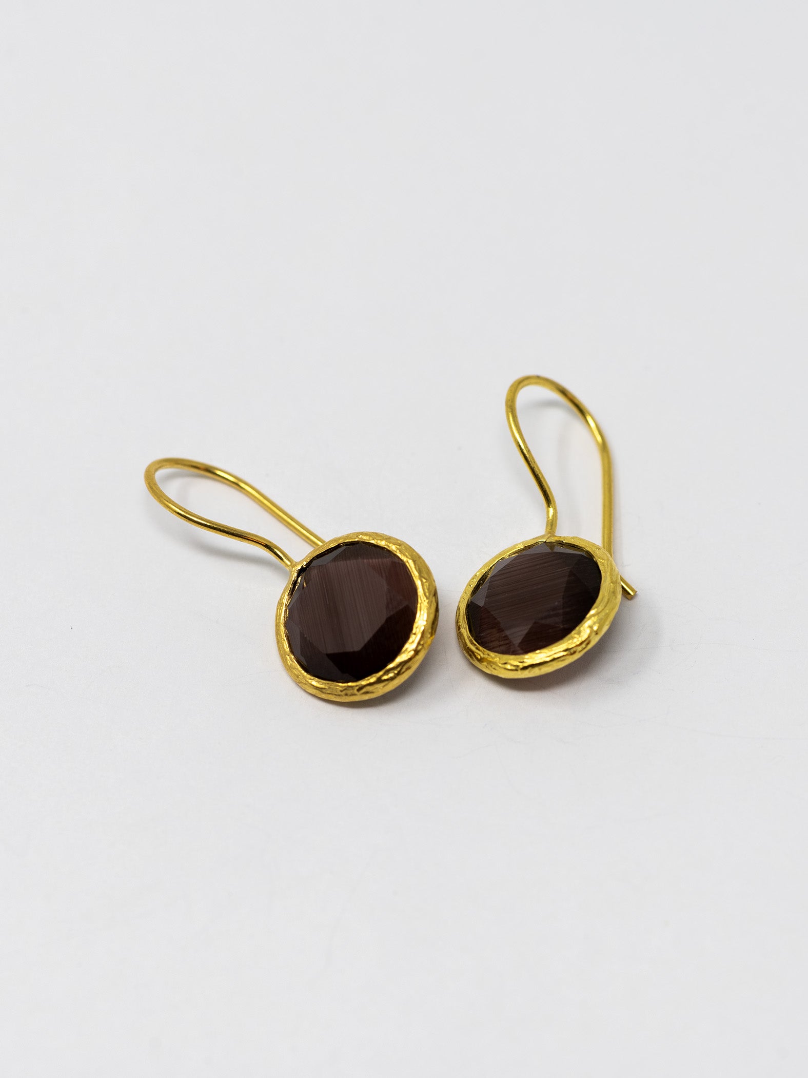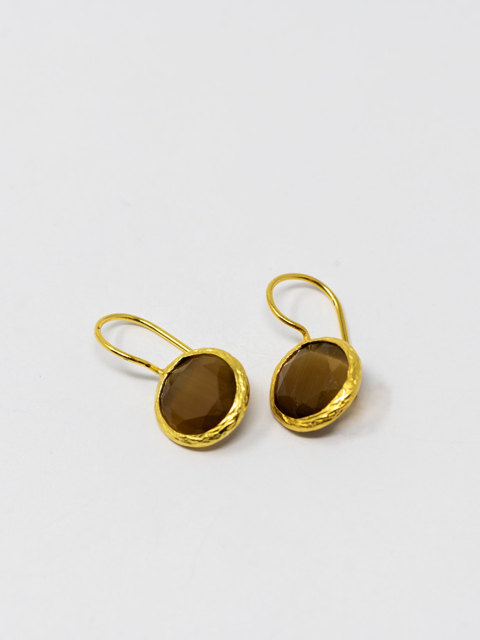 Orecchini realizzati a mano in ottone placcato oro 22 Kt e pietre naturali.