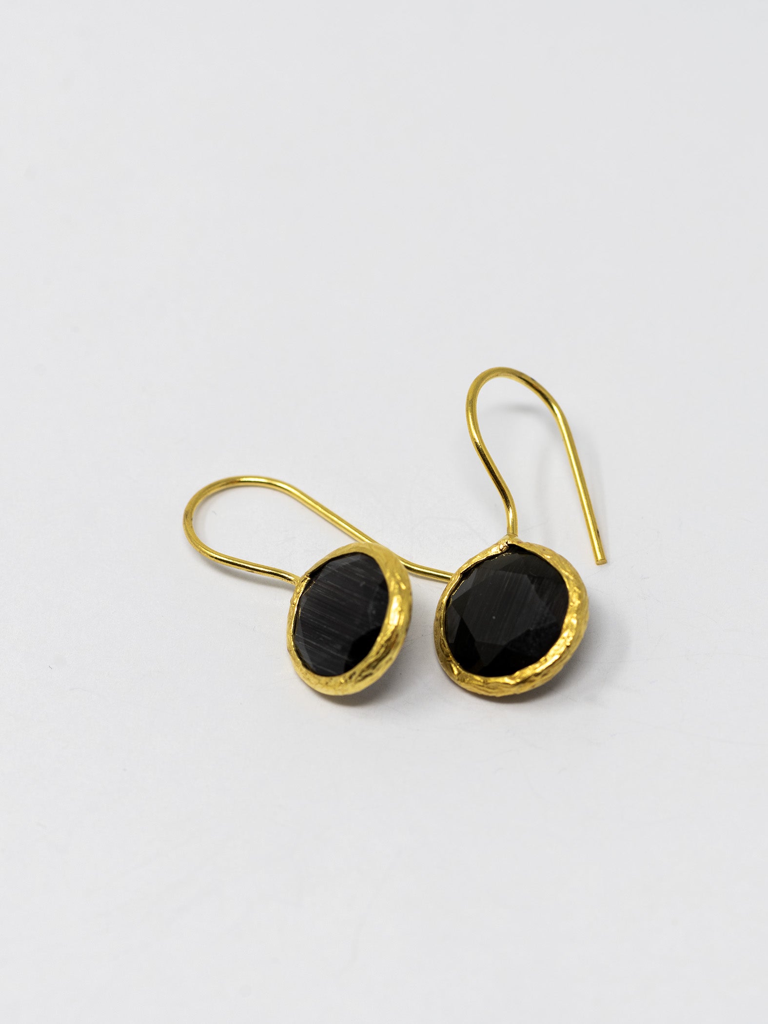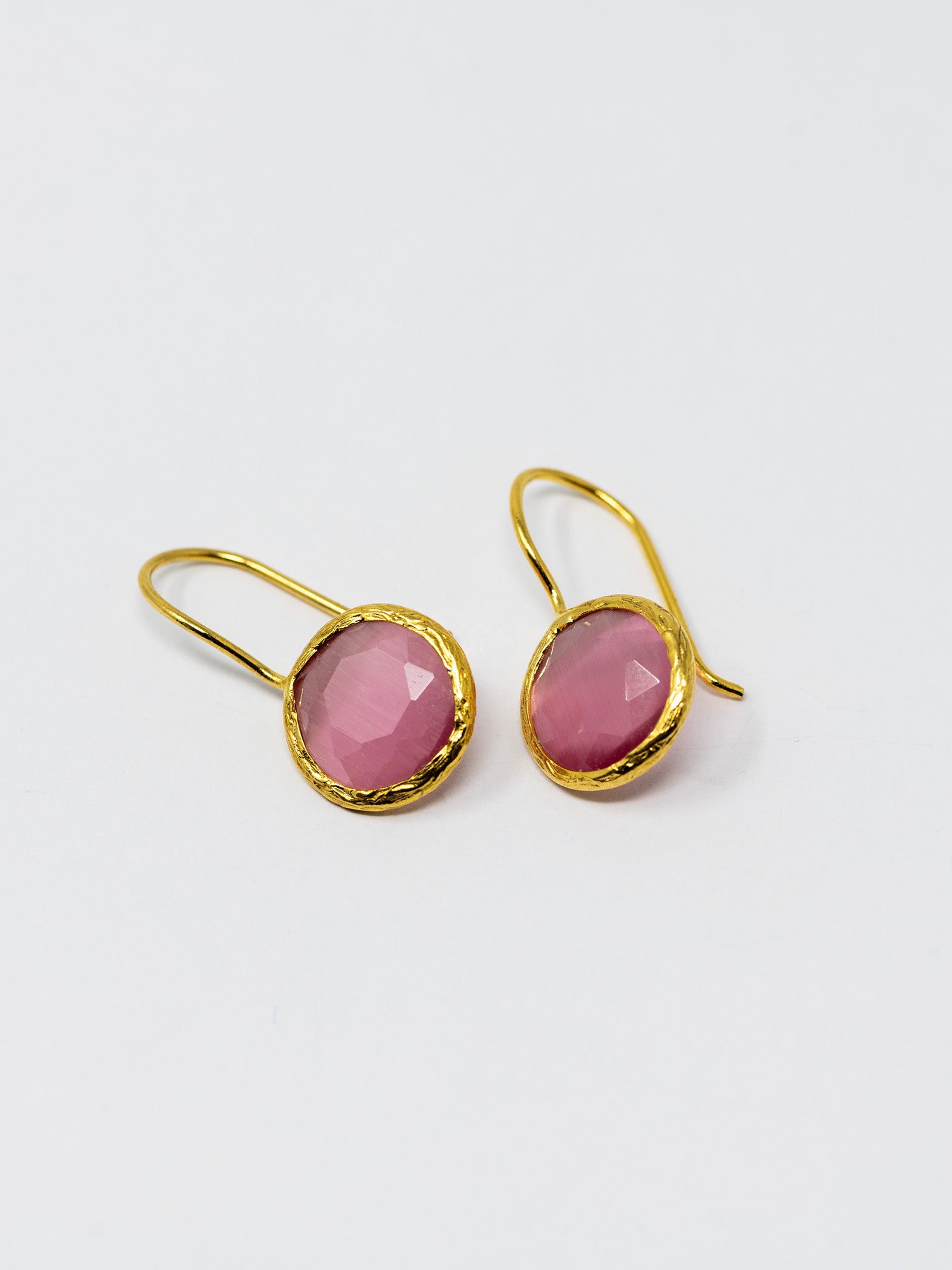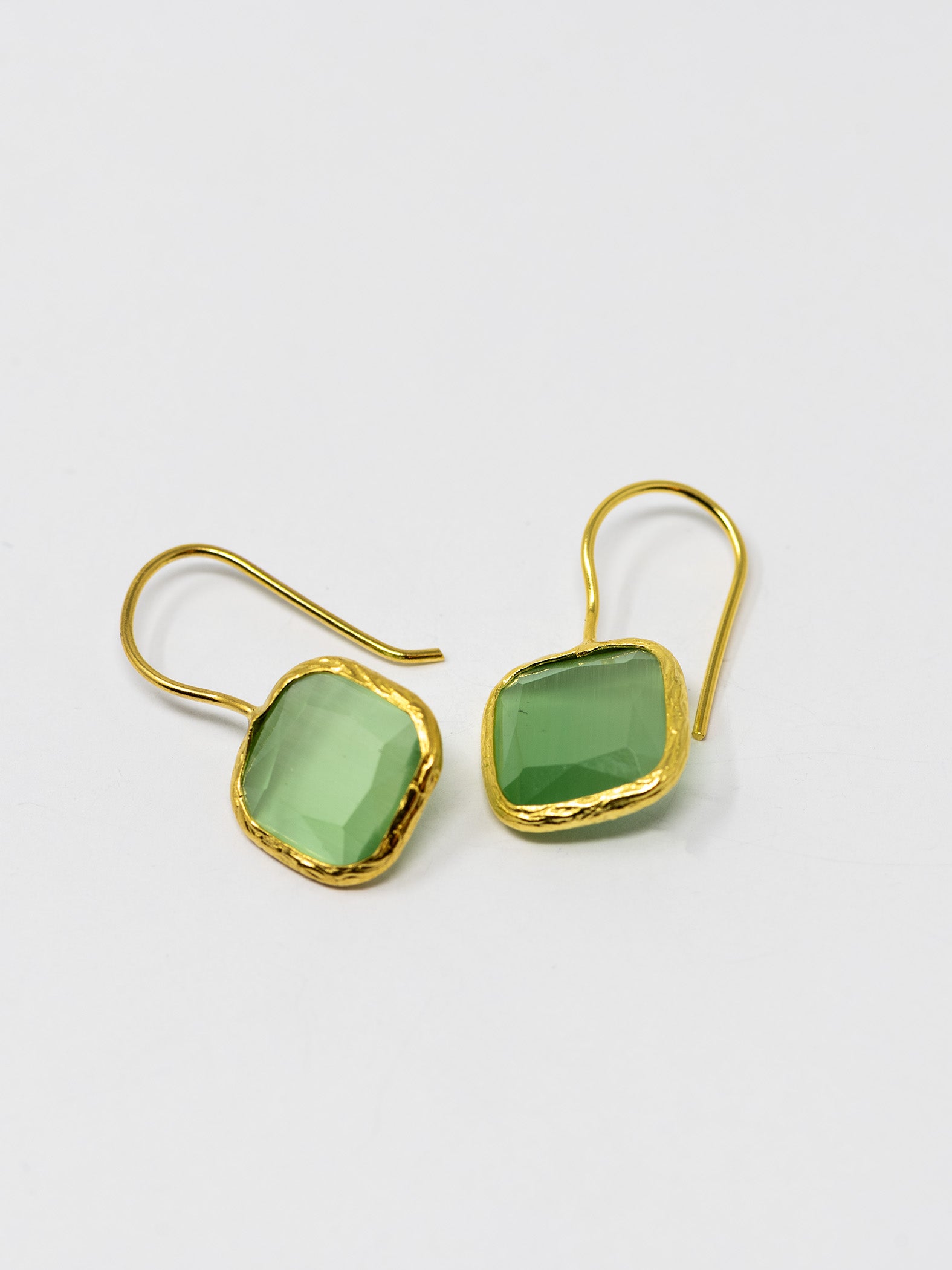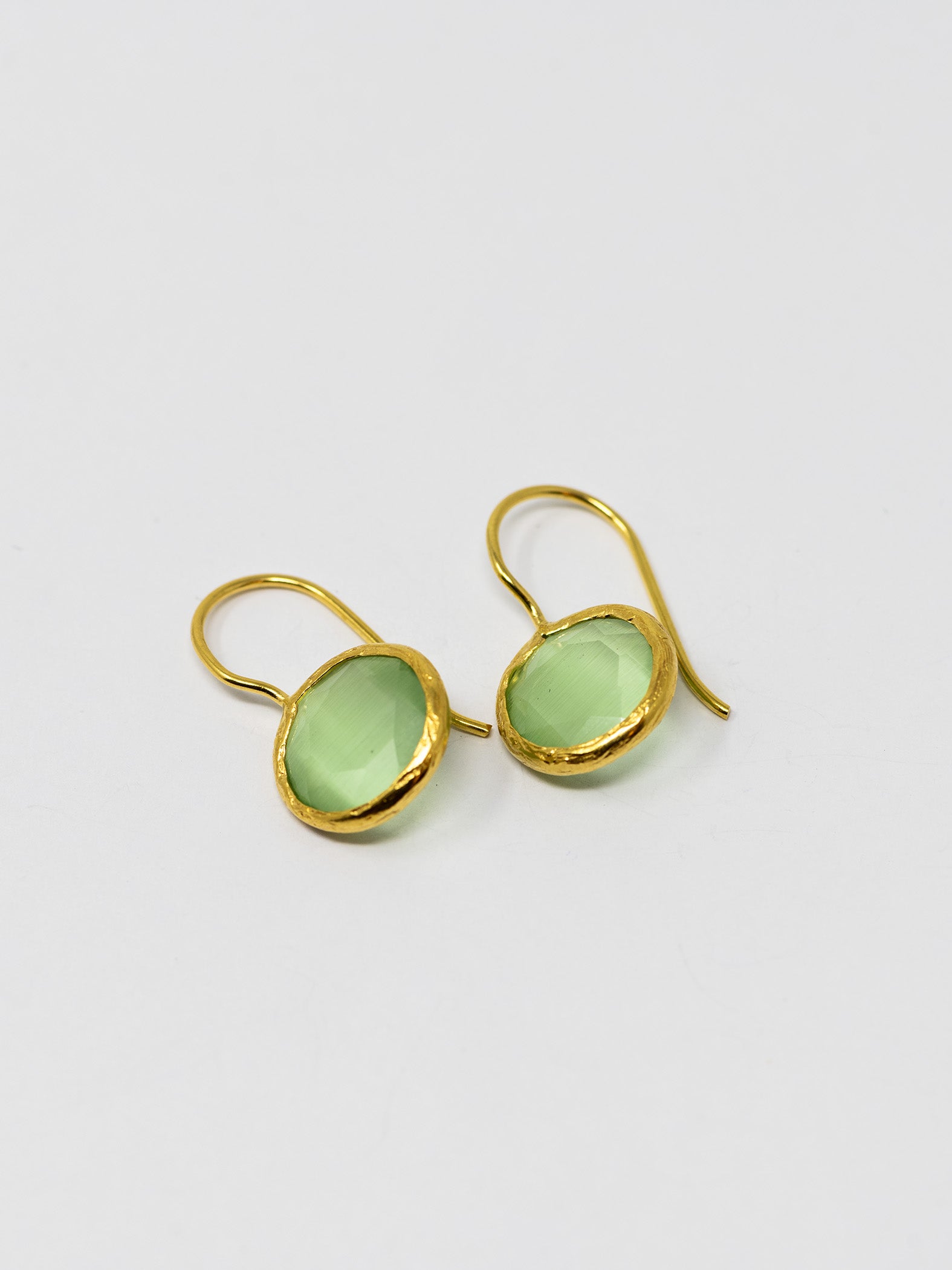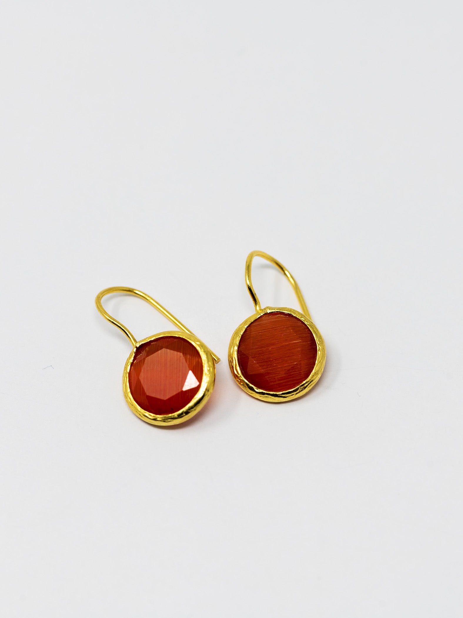 Orecchini realizzati a mano in ottone placcato oro 22 Kt e pietre naturali.