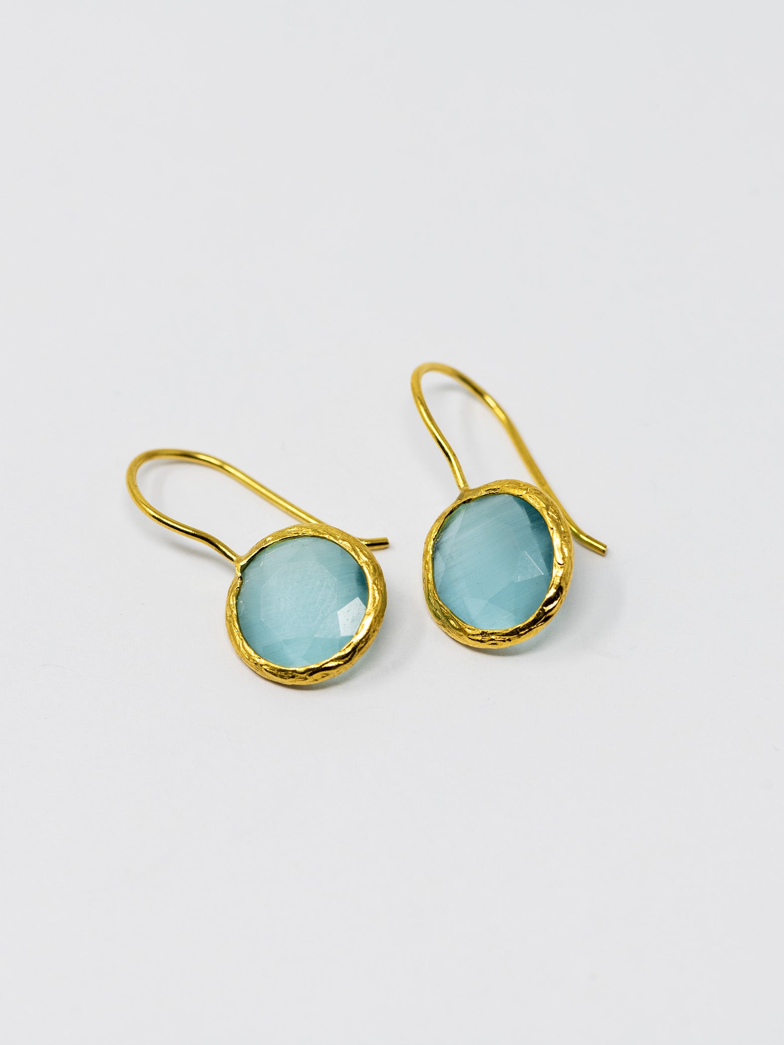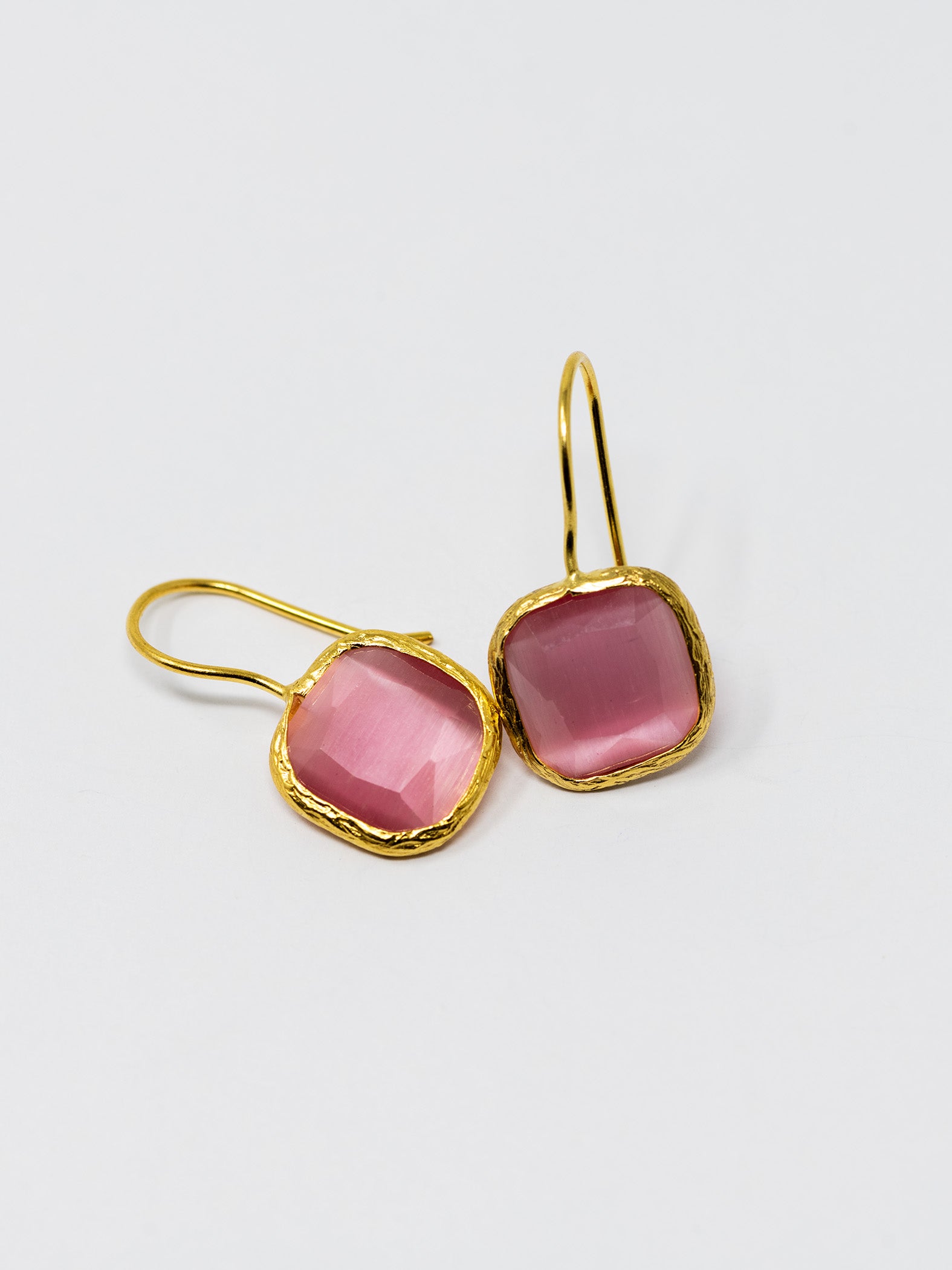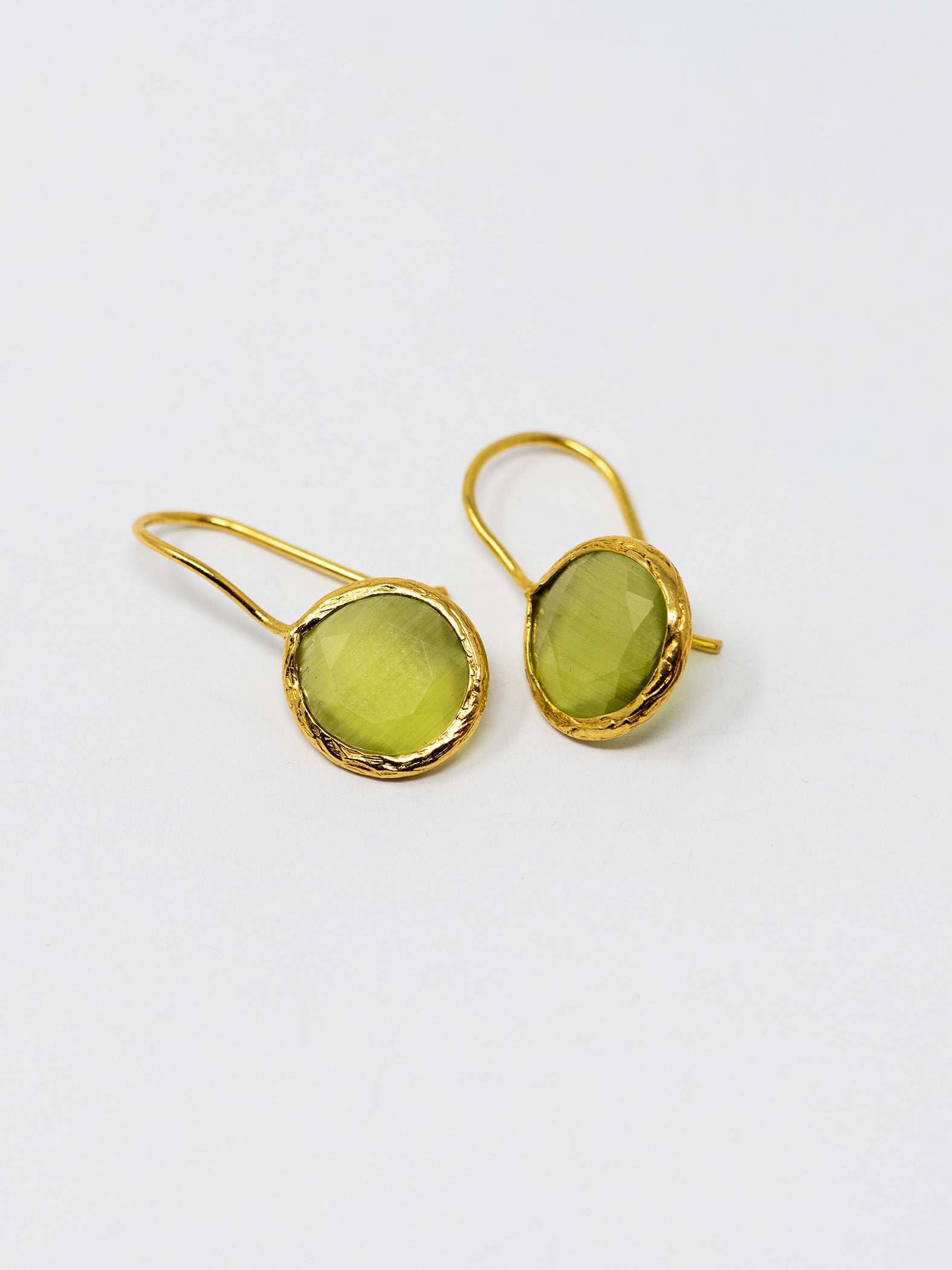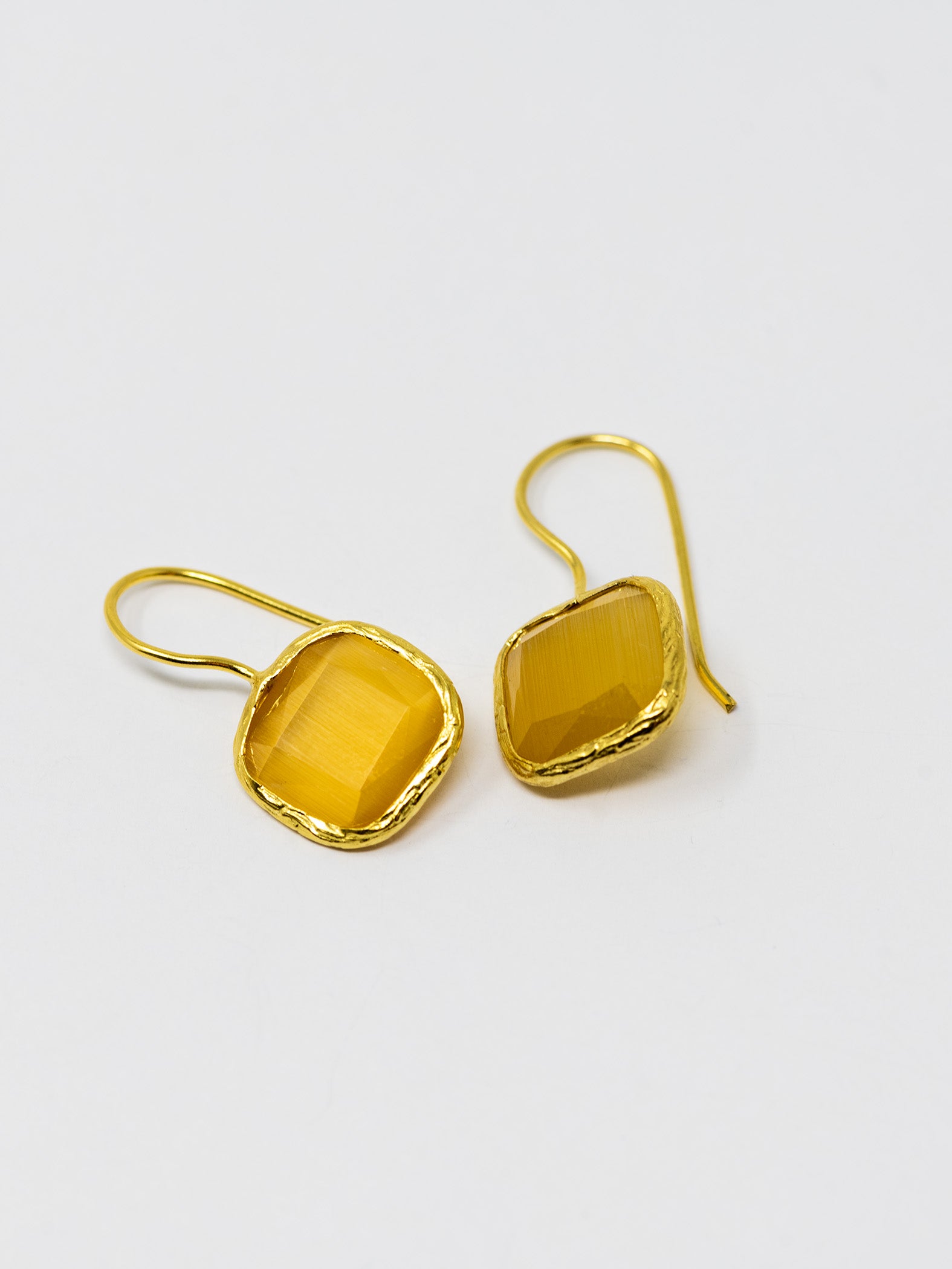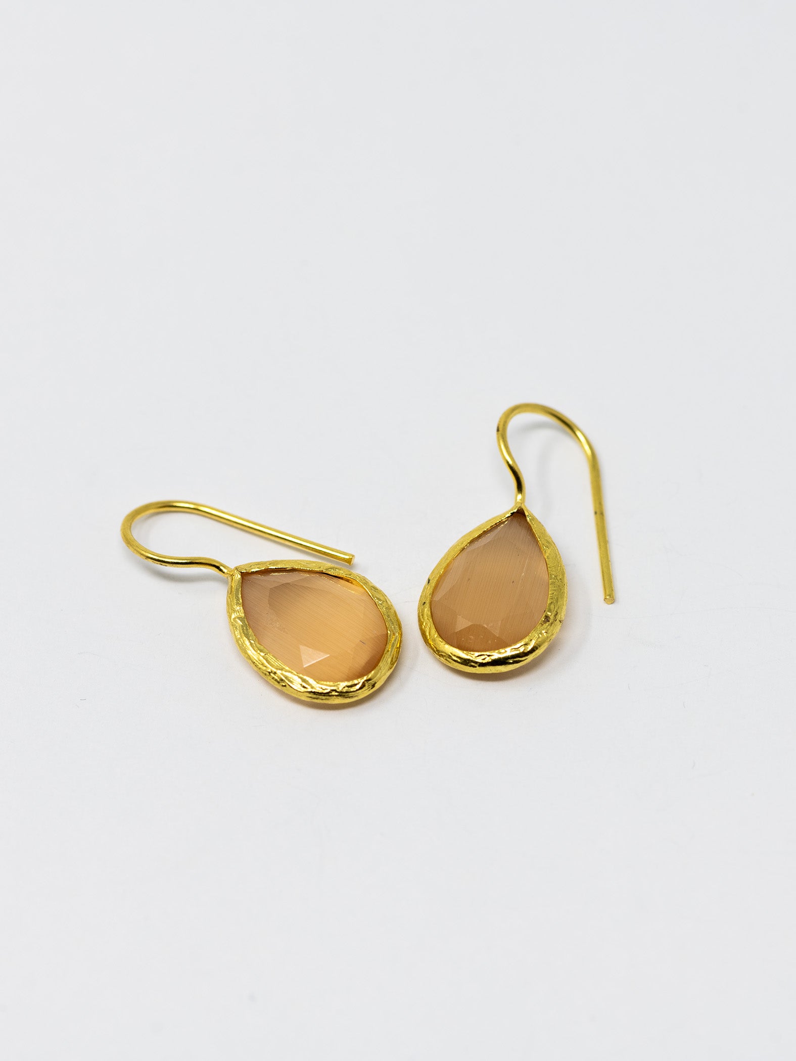 Orecchini realizzati a mano in ottone placcato oro 22 Kt e pietre naturali.