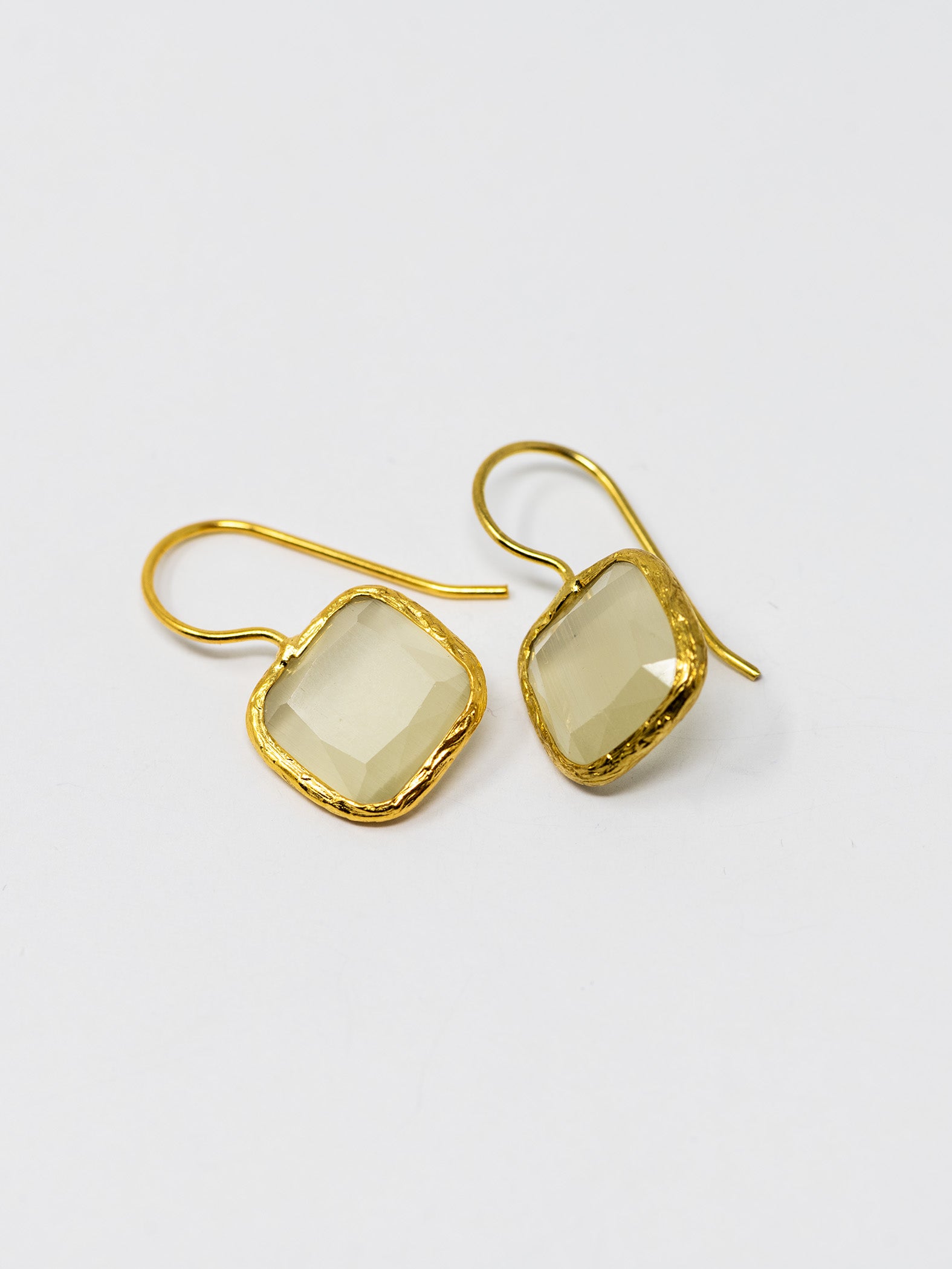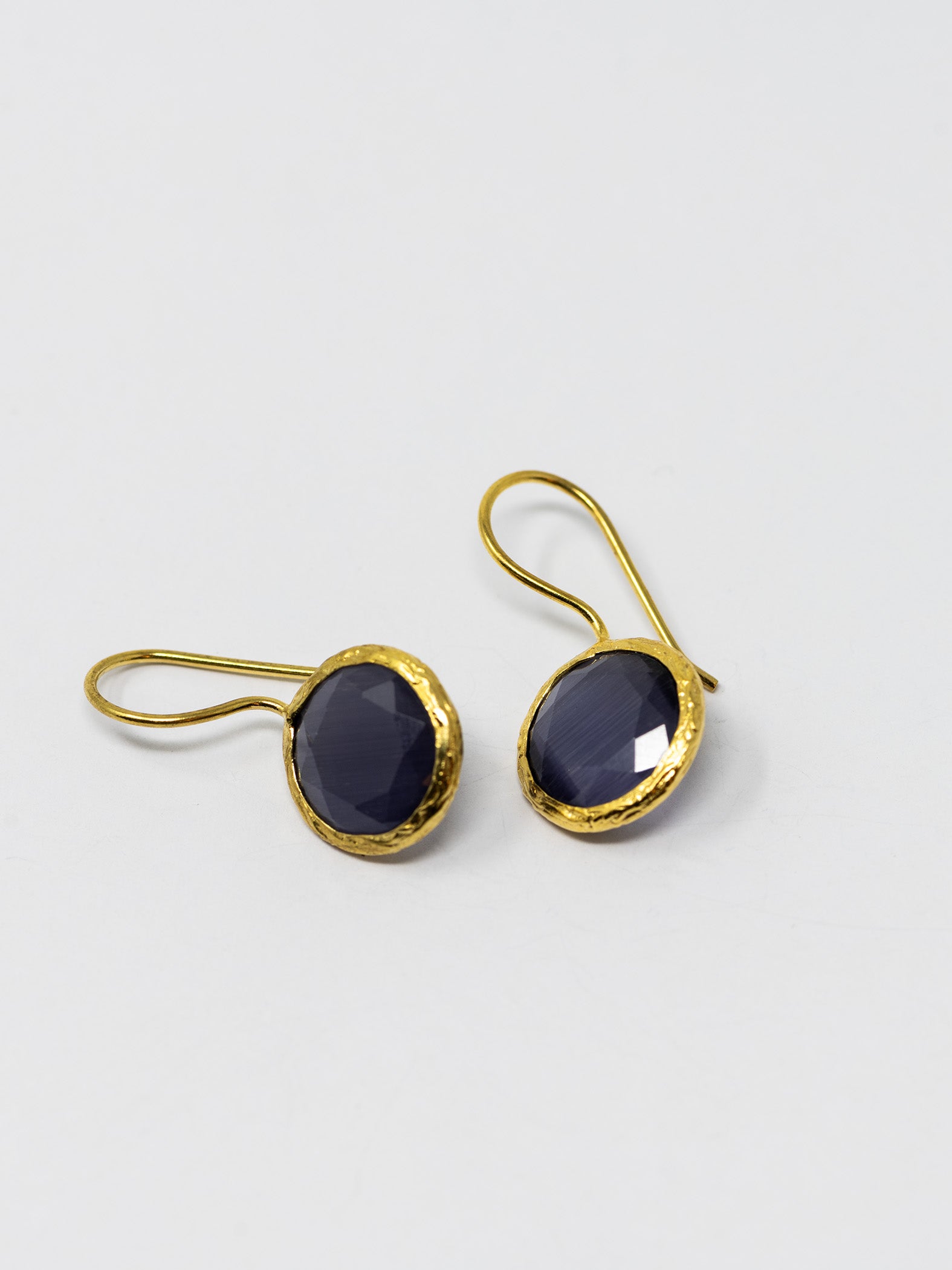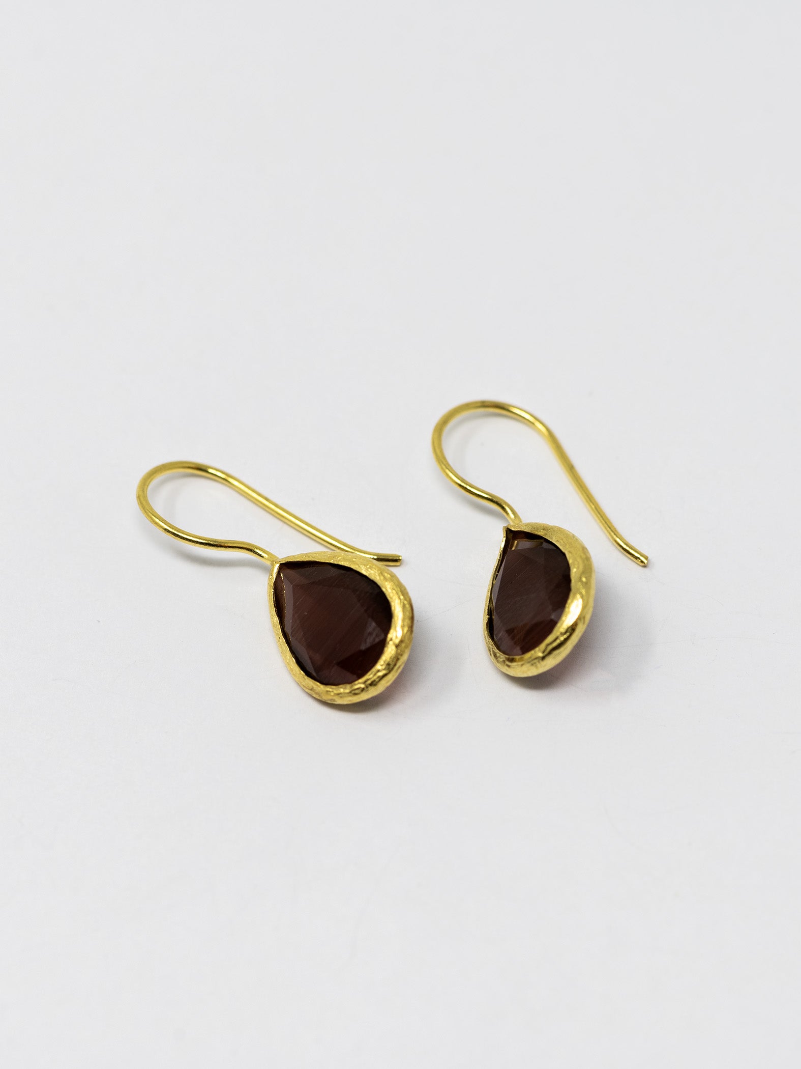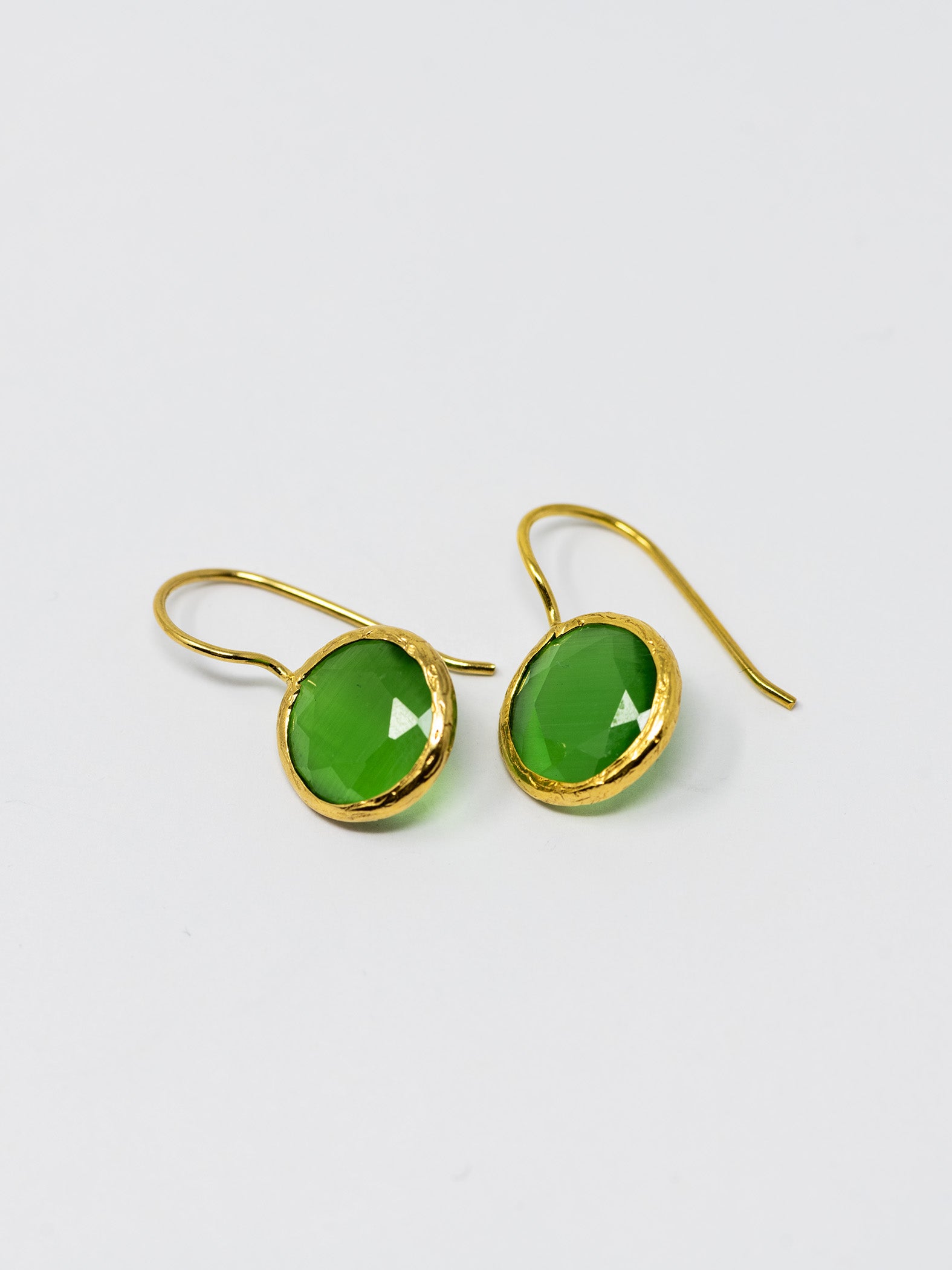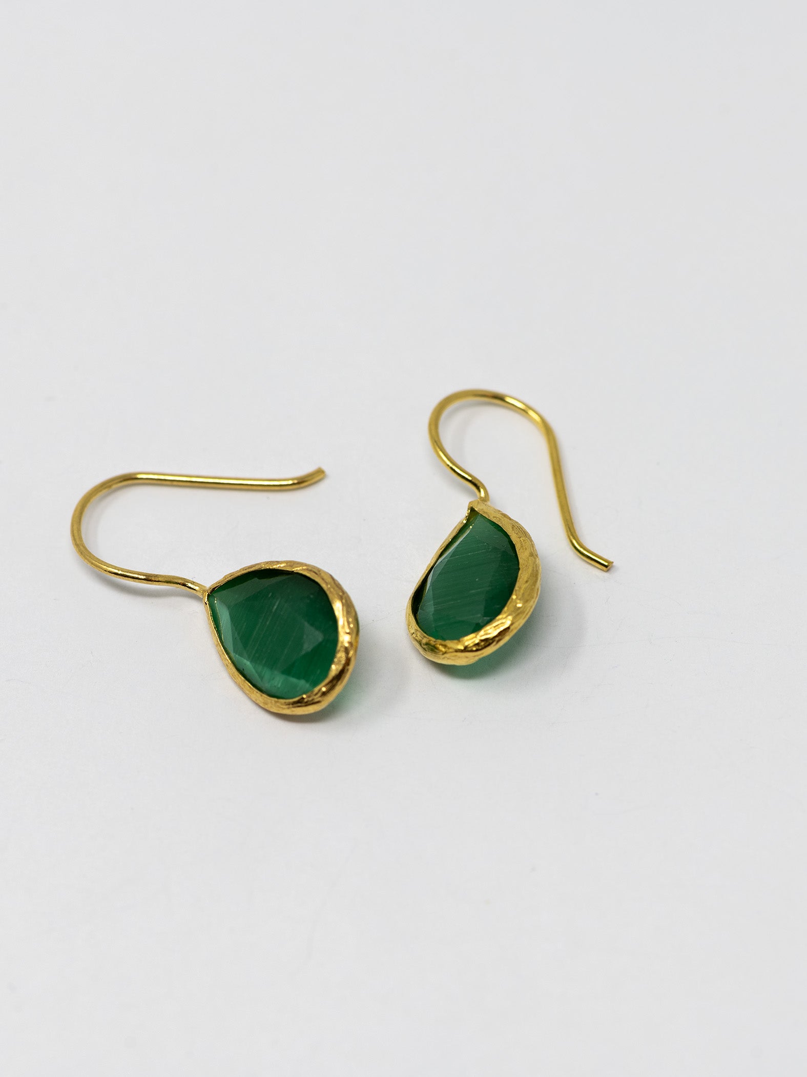 Orecchini realizzati a mano in ottone placcato oro 22 Kt e pietre naturali.