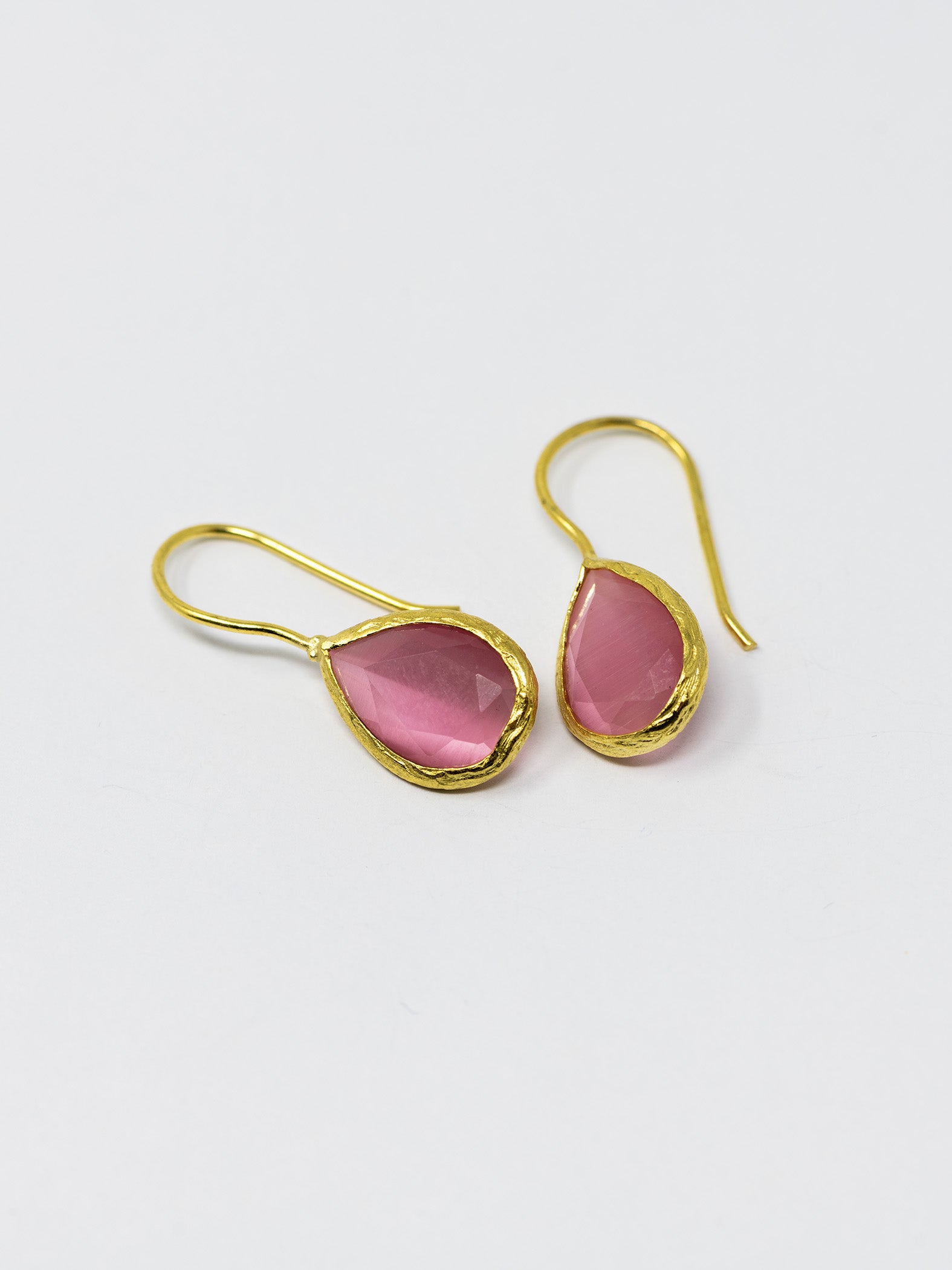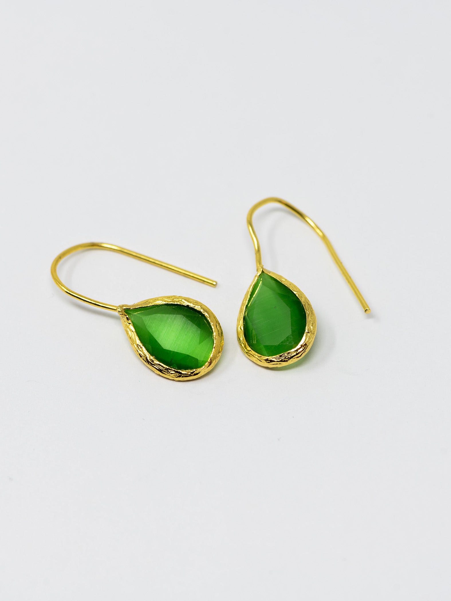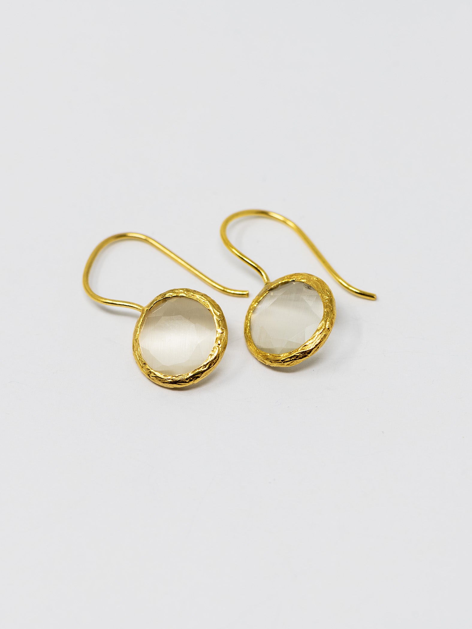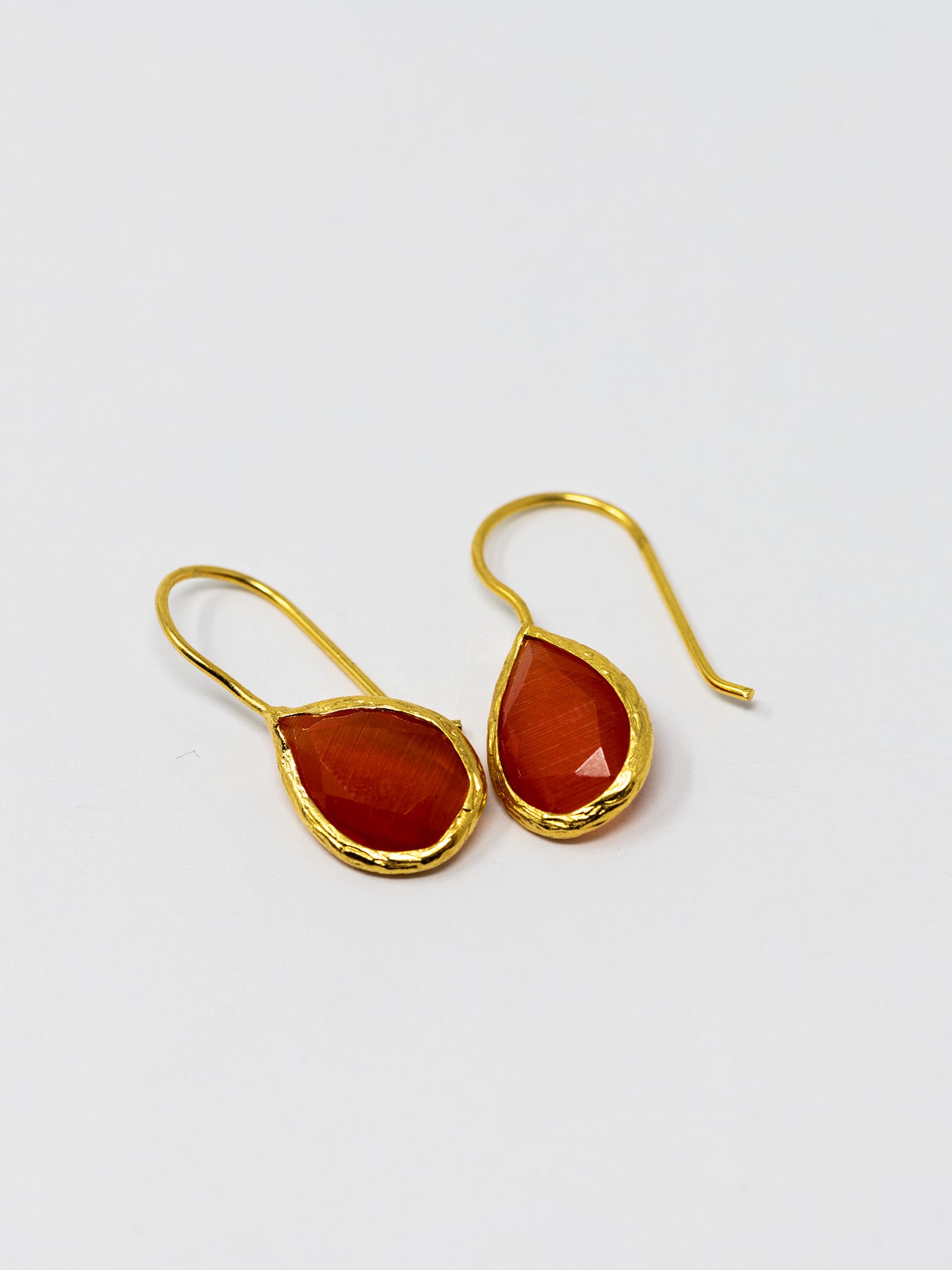 Orecchini realizzati a mano in ottone placcato oro 22 Kt e pietre naturali.
