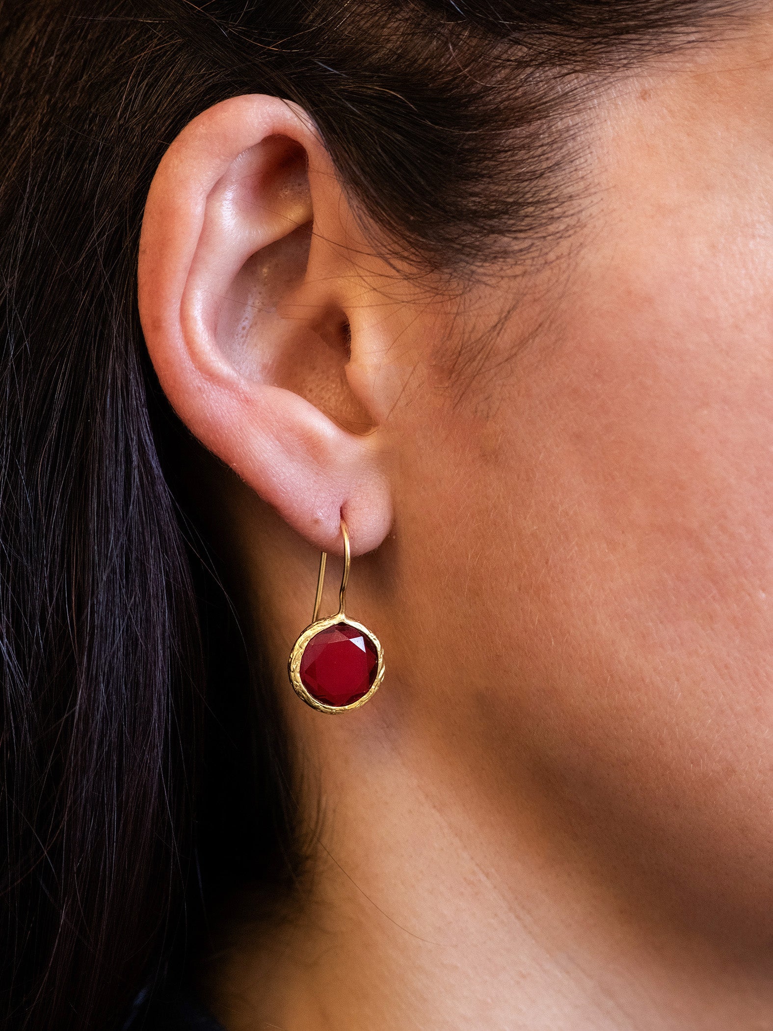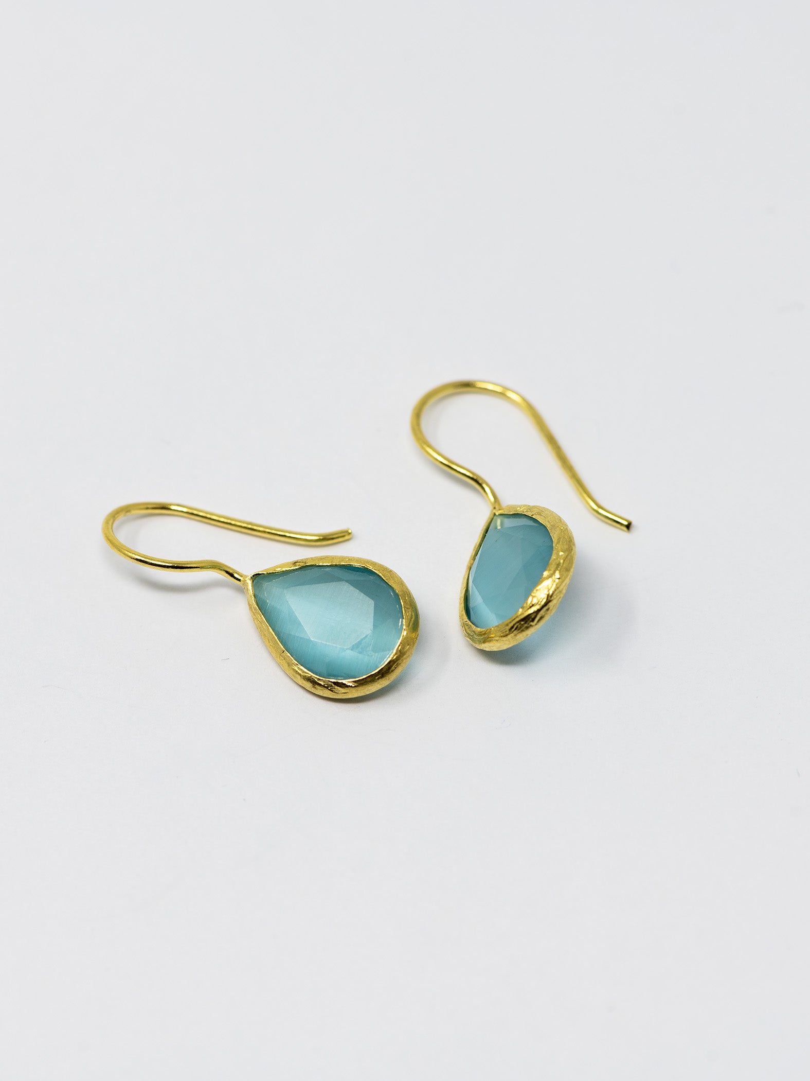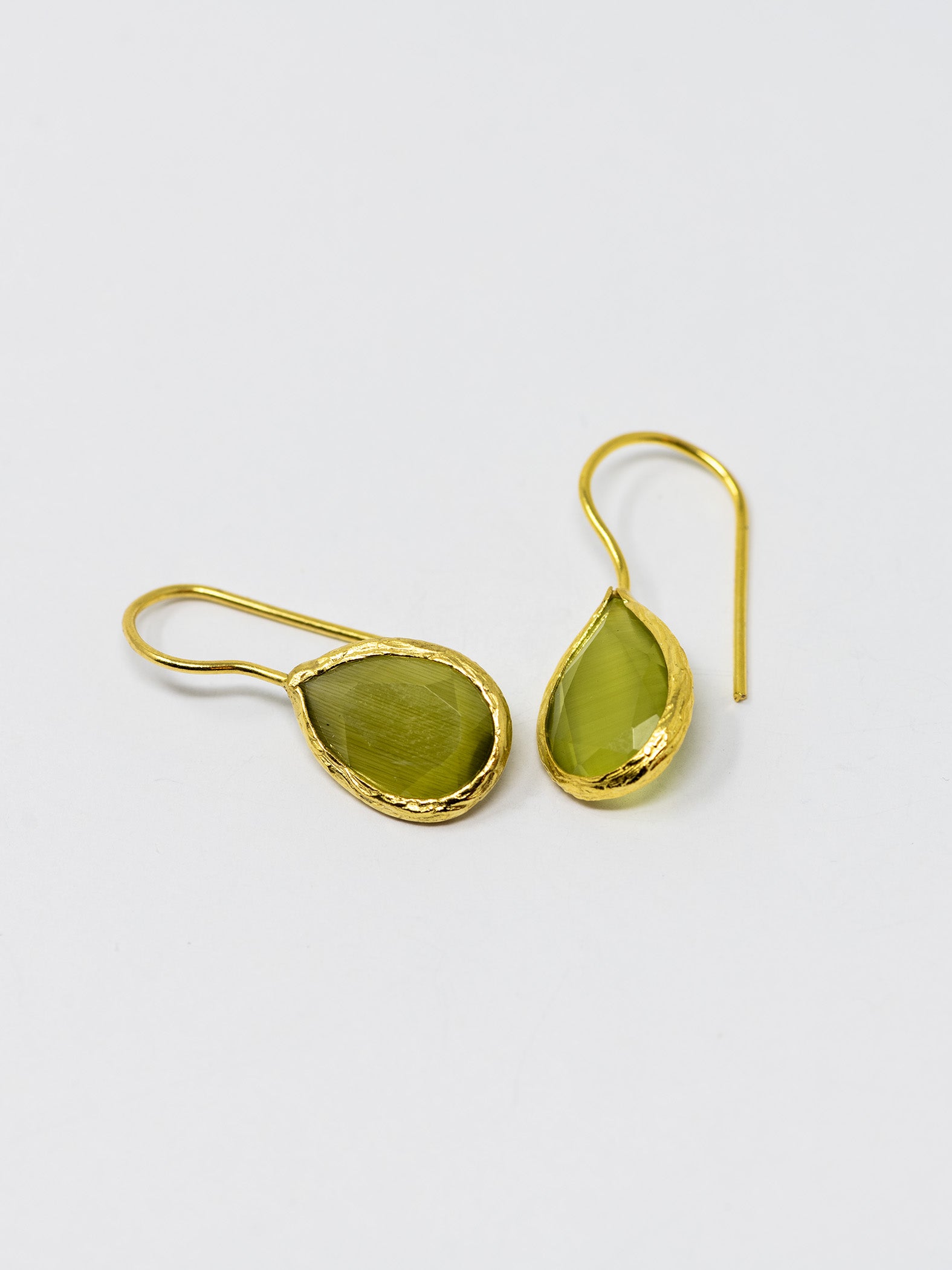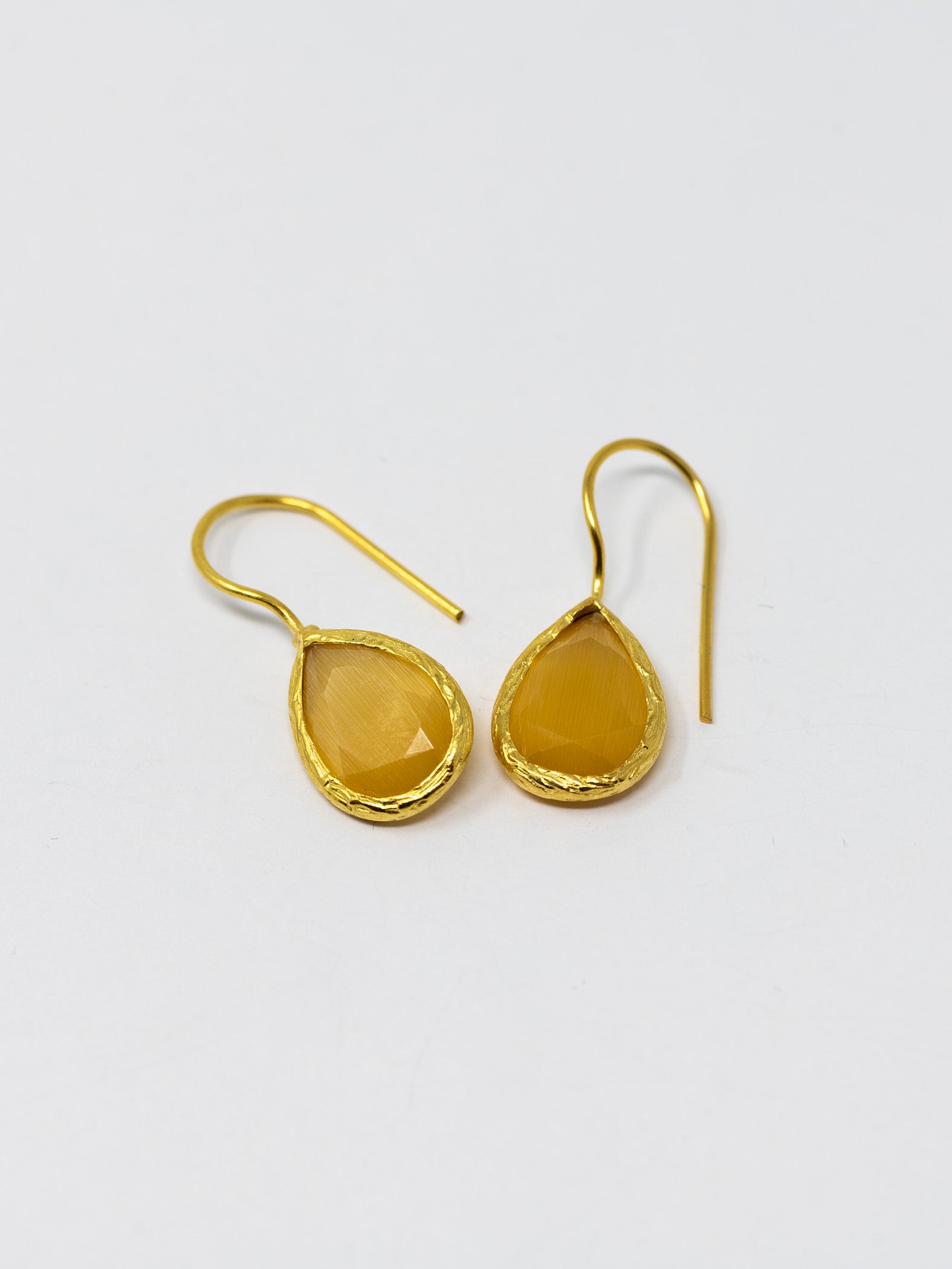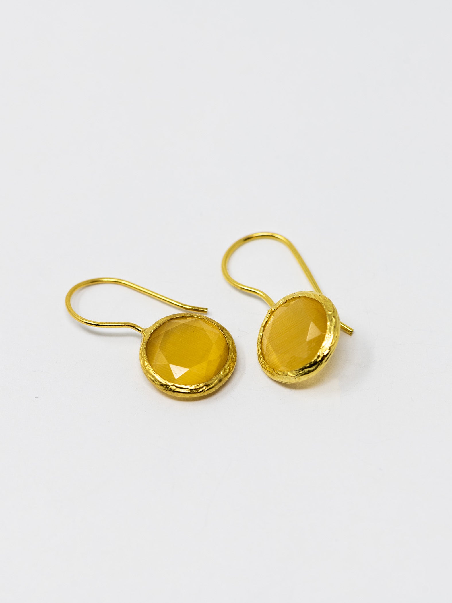 Orecchini realizzati a mano in ottone placcato oro 22 Kt e pietre naturali.